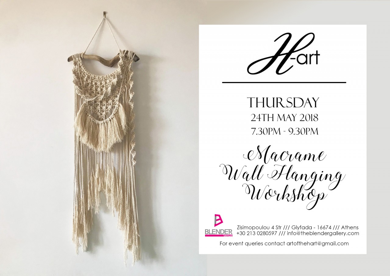 Σας περιμένουμε στις 19:30 στην The Blender Gallery για ένα καλλιτεχνικό και δημιουργικό Macrame Wall Hanging εργαστήρι για αρχάριους.