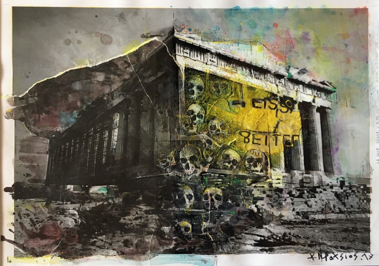 Με αυτήν την αναπάντεχη ερώτηση, ο Κωνσταντίνος Πάτσιος, και ο Αλέξανδρος Μαγκανιώτης παρουσιάζουν τις προτάσεις τους αναζητώντας τις αδιόρατες εκείνες γραμμές που συνδέει το έργο τους, σχετιζόμενες με την έννοια της μνήμης αλλά και τις παραπομπές τους σε μύθους, μνημεία και έργα τέχνης της αρχαιότητας, μ' έναν ευρηματικό και ανατρεπτικό τρόπο. Ο Κωνσταντίνος Πάτσιος συνδυάζει κολάζ και ζωγραφική με μια σύγχρονη αντίληψη, διερευνώντας νέες δυνατότητες αναπαράστασης και αφήγησης. Οι συνθέσεις του εγείρουν ζητήματα υπαρξιακής και οντολογικής τάξεως, οι αναφορές του καλύπτουν ένα ευρύ φάσμα ενώ η χρήση και η αξιοποίηση φωτογραφικών αρχείων είναι πρωταρχικής και καθοριστικής σημασίας. Με κριτική διάθεση, παρουσιάζει τις αποσπασματικές εικόνες-σπαράγματα ενός θρυμματισμένου και περίπλοκου κόσμου –των αντιφάσεων και των παγιδεύσεων, των βεβαιοτήτων και των ανατροπών του– στην προέκταση της κοινωνικής και πολιτικής πραγματικότητας, των ιδεολογιών και της ιστορίας, του παρελθόντος και του παρόντος, των ατομικών και συλλογικών βιωμάτων, επιζητώντας τη συμμετοχή και τη συνενοχή του θεατή, ο οποίος θα πρέπει να εμβαθύνει και να εντοπίσει όλες εκείνες τις συνδέσεις που ενοποιούν και συνέχουν νοηματικά τις εικόνες. Οι συνθέσεις του Αλέξανδρου Μαγκανιώτη συγκροτούν, στο μεταίχμιο «φυσιολογικού», «παράδοξου» και «αμφίσημου», ευφάνταστα, νοητικά και αισθητικά, κολάζ στα οποία το σουρεαλιστικό πνεύμα και το καταλυτικό χιούμορ συνδιαλέγονται με τη μνήμη, τα σύμβολα, την ιστορία και την καθημερινότητα, τον κόσμο των αρχαίων μύθων και του ομηρικού Οδυσσέα. Οι απροσδόκητες συναντήσεις, το παιχνίδι των μεταμορφώσεων, η προβολή ενδόμυχων φόβων, φαντασιώσεων και εμμονών, ενεργοποιούν μια διαφορετική συνθήκη. Παράλληλα, η διερεύνηση των ορίων μεταξύ εικόνας-λόγου/κειμένου, η διαδραστική και αλληλοσυμπληρούμενη σχέση τους, συνιστά βασική παράμετρο του προβληματισμού του. Η ενότητα με τις λέξεις (μία για κάθε γράμμα της αλφαβήτου) και τις εικόνες τους –όπου κεφάλια ζώων ή φυτά προβάλλουν μέσα από ανθρώπινα σώματα– είναι ενδεικτική των προθέσεών του προς αυτήν την κατεύθυνση, ορίζοντας, ταυτόχρονα, ένα πρωτότυπο αλφάβητο της ίδιας της ζωής και της περιπέτειάς της.