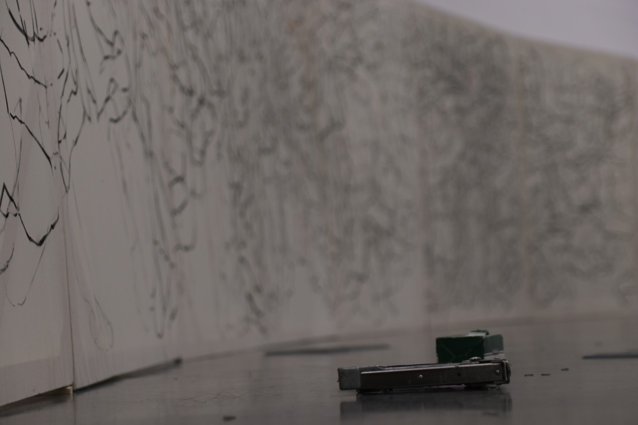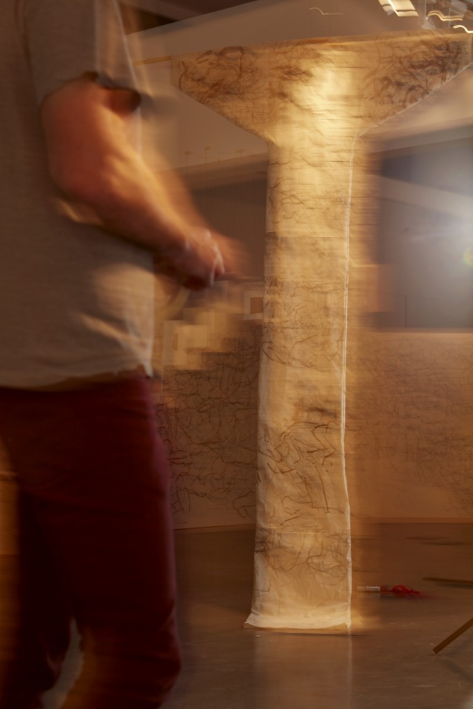Από το 2019 ξεκινάει η ενασχόληση του εικαστικού Κωνσταντίνου Μπερδέκλη με τη γραφή - τη γραφή ως ίχνος σε μια επιφάνεια, ίχνος μιας αίσθησης, ως στοιχείο που οδηγεί σε μια ανάμνηση, ως ερμηνεία όσων υπονοούνται. Με μολύβι και κιμωλία αποτυπώνει σε χαρτί σχέδια που μπορεί να δει κανείς ως μια αφαιρετική εκδοχή σπουδών αναγεννησιακών ζωγράφων όπως ο Μιχαήλ Άγγελος. Τη περίοδο του πρώτου εγκλεισμού λόγω της πανδημίας, τα σχέδια αυτά οδηγούν στη δημιουργία δέκα μεγάλων έργων τα οποία δουλεύονται διαδοχικά, ως ένα ενιαίο έργο. Έγκλειστος και κυνηγημένος, σύγχρονος άνθρωπος των σπηλαίων, ο Κωνσταντίνος Μπερδέκλης ζωγραφίζει με το θεμελιακό υλικό κάρβουνο πάνω σε απροετοίμαστο κάμποτο, εστιάζοντας στα κενά, ενώνοντας τα σημεία και σαρώνοντας τα τοπία της μνήμης. Δημιουργεί διαδρομές, όπως το μυαλό, ακολουθώντας και καταγράφοντας τα ίχνη όσων παρατηρεί. Τελικώς, κατασκευάζει τελάρα τα οποία ενωμένα μετράνε κάτι λιγότερο από 15 μέτρα αφαιρετικών συνθέσεων – αισθήσεων που μπορεί να έχουν ή να μην έχουν ολοκληρωθεί. Μένει να τις δει ενωμένες από απόσταση, κάτι το οποίο είναι ανέφικτο στο "σπήλαιο"-ατελιέ του. Έτσι γεννιέται η ιδέα για ένα οδοιπορικό 11 ημερών, κατά τη διάρκεια των οποίων τα έργα θα μεταφερθούν από το εργαστήριο του καλλιτέχνη στο χώρο της The Blender Gallery, για να βρουν την πραγματική μορφή τους ως ένα ολοκληρωμένο έργο - μυθικό ον, το ΑΡΧΕΤΥΠΟ Α, όπως το ονομάζει ο καλλιτέχνης. Aπό τις 5 μέχρι και 16 Απριλίου, Η The Blender Gallery θα μετατραπεί σε έναν χώρο λατρείας, ένα τέμενος όπου το ΑΡΧΕΤΥΠΟ Α, στημένο σαν ένα οριζόντιο τοτέμ τελάρων, θα καταλάβει το κέντρο του εκθεσιακού χώρου, μακριά από τους τοίχους, φωτισμένο από πίσω. Ιεροτελεστία στο «τέμενος» - γκαλερί θα αποτελέσει το ίδιο το στήσιμο αυτής της αντί-έκθεσης, η ολοκλήρωση ή πιθανή παρέμβαση στο έργο από τον καλλιτέχνη, αλλά και η συνομιλία του installation αυτού κατά τη διάρκεια της παρουσίασής του στον χώρο με με τη τέχνη των εικαστικών Άννας Χαρακτινού και Βασίλη Μπότουλα. Η πρόσκληση για παρουσία της Άννας Xαρακτινού, καθρεφτίζει μια προσπάθεια εξάγνισης του αρχέγονου φυλετικού διαχωρισμού και δημιουργίας ενός ακέραιου όντος με θηλυκή και αρσενική πλευρά. Η πρόσκληση συμμετοχής προς τον Βασίλη Μπότουλα από την άλλη προκύπτει από τελετουργικότητα που φαίνεται να ενέχει η εμμονική του γραφή, το επαναλαμβανόμενο αποτύπωμα στο χαρτί που όντας σε μικροκλίμακα βρίσκεται στον αντίποδα της δουλειάς του Κωνσταντίνου Μπερδέκλη.  Το οδοιπορικό έχει πολλές αποχρώσεις και ανοιχτό τέλος, καταγράφεται και αναθεωρείται διαρκώς, με τα κείμενα της Δήμητρας Καραχοτζίτη και τη ποίηση και ζωγραφιές του Ιάσων Αλύ, τα ενδύματα της Θωμαΐδος Κοπανιά, να συνδέονται με και να συνοδεύουν τη δουλειά του εικαστικού καλλιτεχνη Κωνσταντίνου Μπερδέκλη. Η δράση μιμείται την απόπειρα σκιαγράφησης της ρευστότητας των συνειρμών στον καμβά, από την πλευρά του καλλιτέχνη. Η μίμηση και εδώ αποτελεί το μέσο κατάκτησης άρα και κατανόησης του «άλλου», του έτερου. Πρόκειται για μια πειραματική, πολύπλευρη και δυναμική δράση, ανοιχτή σε οποιαδήποτε αντίδραση, η οποία θα επικοινωνηθεί  διαδικτυακώς στο ευρύτερο κοινό την Άνοιξη του 2021 στην ιστοσελίδα και τα μέσα κοινωνικής δικτύωσης της The Blender Gallery, αλλά και όλων των συντελεστών.