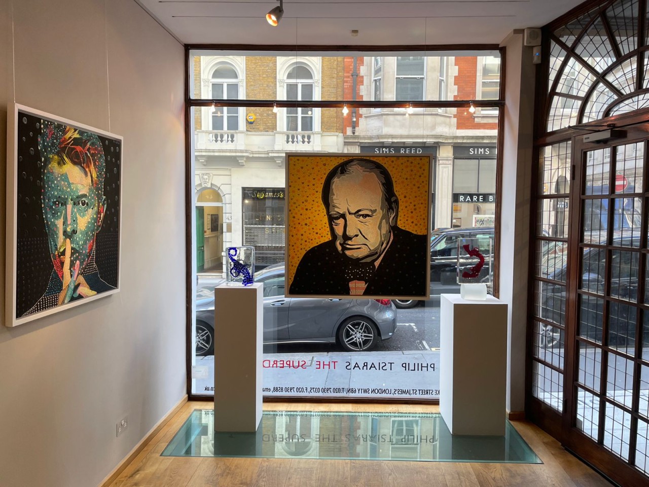 Η Blender Gallery και η Varvara Galleries ανακοινώνουν την αναδρομική έκθεση του Philip Tsiaras 'The SUPERDOT' στην Gallery 8 στο Mayfair. Η έκθεση SUPERDOT είναι μια επισκόπηση των έργων του Τσιάρα που σχετίζονται με κουκκίδες και καλύπτουν 35 χρόνια χρήσης της κουκκίδας στους πίνακές του. Στην έκθεση θα παρουσιαστούν πορτρέτα Βρετανών πολιτικών και βασιλικών προσωπικοτήτων όπως ο Ουίνστον Τσόρτσιλ, η Βασίλισσα και ο Πρίγκιπας Φίλιππος, μαζί με θρύλους της λαϊκής κουλτούρας όπως τη ντίβα της όπερας Μαρία Κάλλας, εξωτικούς ζωγράφους όπως η Φρίντα Κάλο και Σαλβαδόρ Νταλί,  μουσικά είδωλα όπως ο  Ντέιβιντ Μπάουι και ο Τζίμι Χέντριξ.  Ο Τσιάρας ξαναβρίσκει την αρχική του ιδιότητα, ως κλασικός , ασπρόμαυρος φωτογράφος στην αρχή της καριέρας του, για να φέρει στην πραγματικότητα μια νέα ζωγραφική γλώσσα σε ρεαλιστικές χειροποίητες προσωπικότητες. Ο κόσμος του είναι ένα κόσμος ενός εμμονικού -με τον πουαντιγισμό- καλλιτέχνη, ο οποίος αγαπά τις προσωπογραφίες. -Η ΚΟΥΚΙΔΑ- συνδυασμένη με την λαικη εικονογραφία είναι ενσωμετωμένη με εκατομμύρια ζωγραφισμένες, πολύχρωμες συντεταγμένες, οι οποίες συνορεύουν με αυτό που ο Τσιάρας αποκαλεί “η επιστημονικότα του αισθησιακού” ή με αρχαϊκούς όρους “ένα ελληνό-ρωμαικό μωσαϊκό”. Η έκθεση “SUPERDOT” είναι επίσης μια επισκόπηση των έργων του Τσιάρα που σχετίζονται με κουκκίδες και καλύπτουν τρείς δεκαετίες χρήσης της τεχνικής του πουαντιγισμού σε ένα μεγάλο φάσμα του θέματός του. Το κυρίως θέμα της αναδρομικής είναι τα νεότερα Dot πορτρέτα του, τα οποία συνδυάζονται με άλλα γνώστα έργα του καλλιτέχνη. Πιο συγκεκριμένα, η πνευματική, για τον καλλιτέχνη, σειρά “ The circle of life”, τα ηρωικά, ιδιότυπα Άλογά του και τα σπλαχνικά απεικονιστικά έργα του, τα οποία αγόρασε το Μητροπολιτικό Μουσείο ήδη από το 1983.