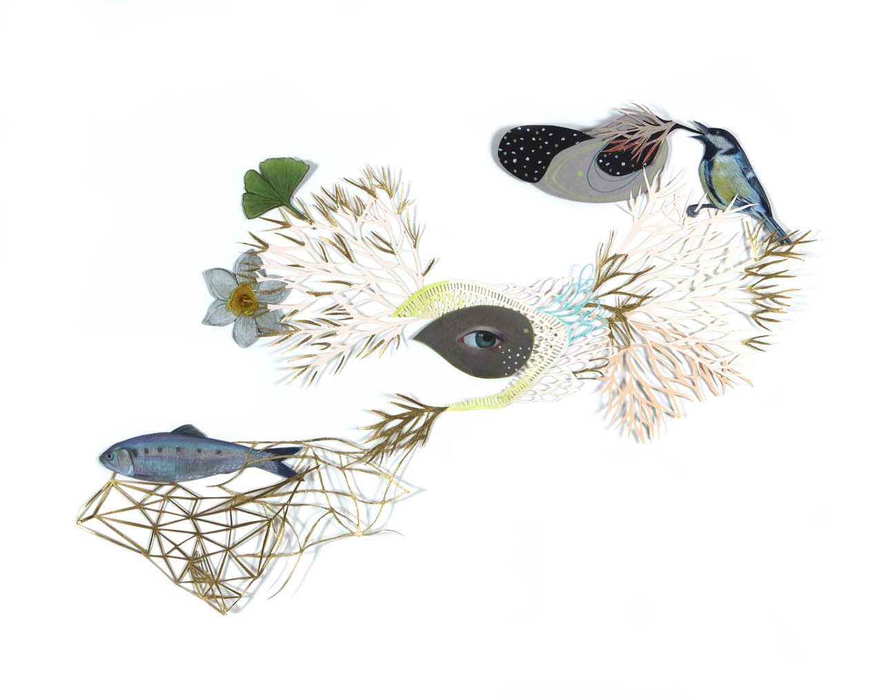 Η Τhe Blender Gallery έχει την χαρά να παρουσιάζει την ατομική έκθεση της ζωγράφου και χαράκτριας Άννας Χαρακτινού με τίτλο The Inside Out Ceremony. Πρόκειται για μια σειρά αυτοπορτρέτων, άλλοτε επιτοίχια, άλλοτε σε μορφή installation αλλά και προστατευμένα μέσα σε γυάλες. Η εικαστικός έχοντας μεγαλώσει μέσα σε ένα καλλιτεχνικό οικογενειακό περιβάλλον, ήταν σχεδόν αδύνατο να μην ακολουθήσει το ίδιο μονοπάτι. Πέρα από τα κινήματα των εικαστικών τεχνών, η Χαρακτινού βρίσκει πηγή έμπνευσης στα παραμύθια των αδελφών Γκριμ, του Χανς Κρίστιαν Άντερσεν, τον κινηματογραφικό Γερμανικό εξπρεσιονισμό, τα βιβλία του Γκαμπριέλ Γκαρσία Μάρκες, του Μπορίς Βιαν και του Μποντριγιάρ, τα ποιήματα της Τζόυς Μάνσουρ και των υπόλοιπων σουρεαλιστών, τις θεωρίες της κβαντικής φυσικής και την ιερή γεωμετρία. Το υλικό που θαυμάζει και επικρατεί στα έργα της είναι το χαρτί. Παθιασμένη με την λεπτότητα του υλικού και τη δυνατότητα μεταμόρφωσής του σε διαφορετικά σχήματα και φόρμες, δημιουργεί σουρεαλιστικούς, ονειρικούς κόσμους με συμβολικές αναπαραστάσεις στο χώρο. Μυστικιστικές γυναικείες φιγούρες, υβρίδια ανθρώπων- ζώων, συγχωνεύονται με προσωπικές εμπειρίες της εικαστικού, που διηγείται ιστορίες για διαχωρισμούς και ενώσεις, για το θάνατο, τη ζωή, τον έρωτα, τη γέννηση. Κάθε χαρτί μετατρέπεται έτσι σε ένα λαβυρινθώδες ταξίδι, γεμάτο προσωπικές ανακαλύψεις. Το έργο της επικεντρώνεται στη χρήση μικτών μέσων πάνω στο χαρτί, (χρωματιστά μολύβια ακουαρέλας, μελάνια, παστέλ) καθώς και σε μια σχεδόν διαλογιστική διαδικασία κοπής του. Τα εύθραυστα αυτά διοράματα, γεννιούνται ως απτά κομμάτια της φαντασίας της και κάνουν την παρουσία τους στο φυσικό μας κόσμο ως λιτές κατασκευές και χώροι διαπερατοί. Πρόκειται για ενα δομημένο χάος που ισορροπεί ανάμεσα στη γεωμετρία τηςλης και την αυθόρμητη, συναισθηματική εξιστόρηση. Ένας κόσμος δυναμικής σιωπής που παρουσιάζει τη γέννηση μιας άλλης μυστικής πραγματικότητας, πέραν του ορατού. Η δομή του έργου της περιέχει την ουσία ενός ονείρου που συμβαίνει κάτω από την ορθολογιστική επιφάνεια. Πρόκειται για τη μεφόρτωση σε εικόνα, αυτού που δεν μπορεί να ειδωθεί με τα μάτια της λογικής. Ο ρόλος του χαρτιού λειτουργεί σημειολογικά στην τέχνη της, επειδή προέρχεται από τα δέντρα που για την ίδια αποτελούν ιερές, συμβολικές υπάρξεις, μιας και ενώνουν το μέσα με το έξω, τον ουρανό με την γη. Στη σειρά των πολύσημων έργων που παρουσιάζονται στο πλαίσιο της έκθεσης The Inside Out Ceremony αναλύεται αυτή η σχέση του εσωτερικού και του εξωτερικού κόσμου. Πώς αυτό που βιώνουμε εσωτερικά, αντικατοπτρίζεται και αλληλεπιδρά με αυτό που ζούμε στην εξωτερική μας πραγματικότητα. Η δημιουργία αυτών των έργων είναι άρρηκτα συνδεδεμένη με τις έννοιες της συμβολικής Μεταμόρφωσης, της ένωσης, της Αναγέννησης, του Έρωτα. Αρχικό έναυσμα υπήρξε η ενασχόληση της με το μοτίβο του  πλέγματος, που συμβολίζει ακριβώς την ιδέα της ένωσης και της διάχυσης των ιδεών. Έτσι δημιουργήθηκαν αυτές οι αέρινες κατασκευές, που αρθρώνουν ένα σχεδόν άυλο αρχιτεκτόνημα μέσα στο χώρο, και διερευνούν την ιδέα οτι όλα τα ζωντανά πλάσματα αλληλοσυνδέονται και οτι κάθε στοιχείο στον εσωτερικό και στον εξωτερικό κόσμο, προέρχεται από την ίδια πηγή. Συγκεκριμένα η εικαστικός έχει αναφέρει ότι “ Αν κάτι γεννηθεί εδώ αυτή τη στιγμή, νοερά αυτό το πλέγμα δονείται και μεταφέρεται η ιδέα και η γ